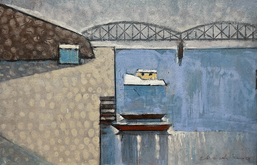 tempera, sololit, 2025, 11,5 x 17 cm, sign. PD Chadima, rám, žák prof. Kaplického na Státní grafické škole v Praze a prof. Fišárka na VŠUP tamtéž, člen skupiny Radar
