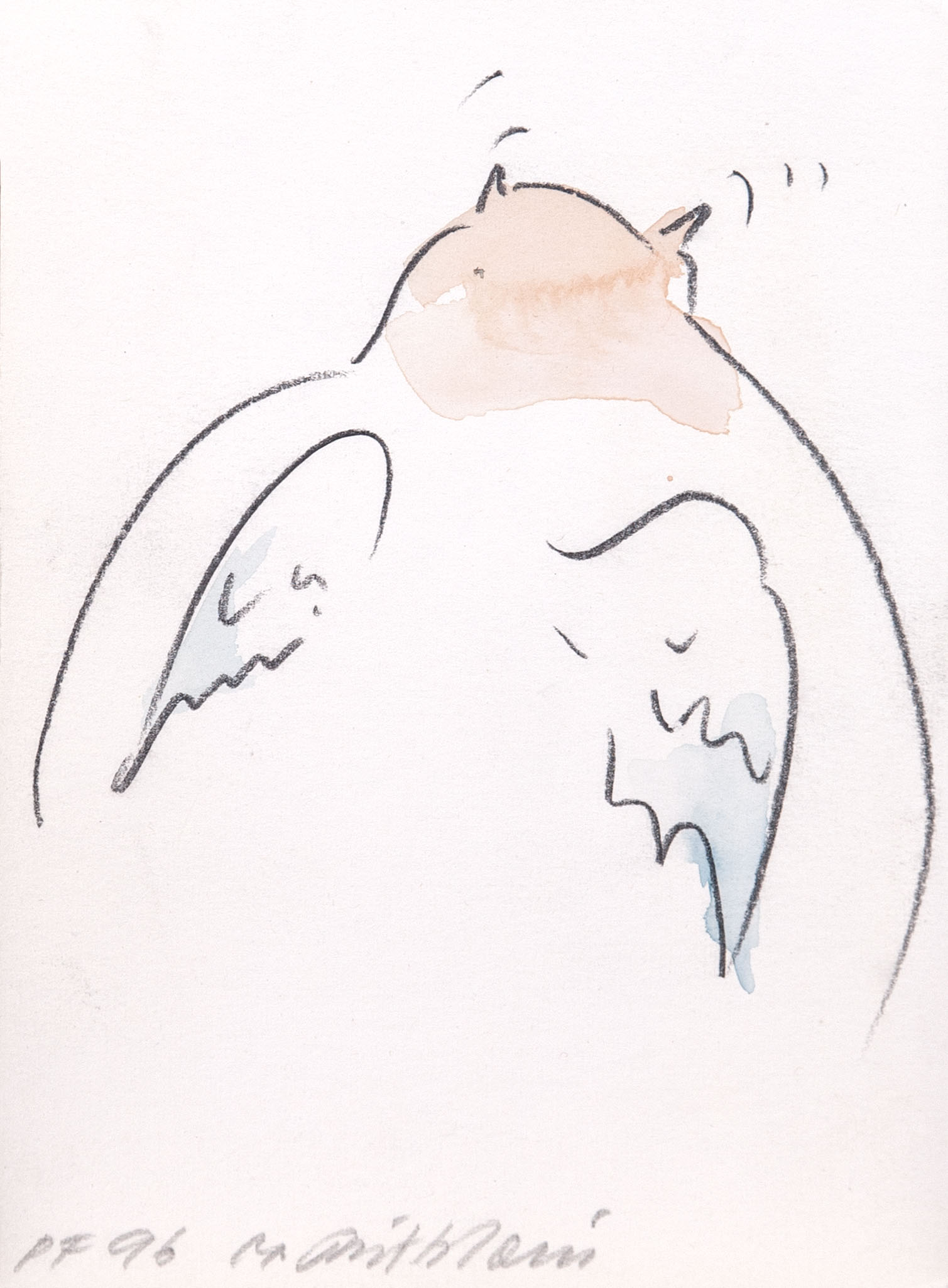 akvarel, tužka, papír, 1994, 17 x 12,5 cm, sign. PD M. Rittstein, studium na SOŠV v Praze, žák prof. A. Paderlíka na AVU tamtéž, spoluzakladatel Volného seskupení 12/15, Pozdě, ale přece, člen uměleckého sdružení Nová skupina a SVU Mánes