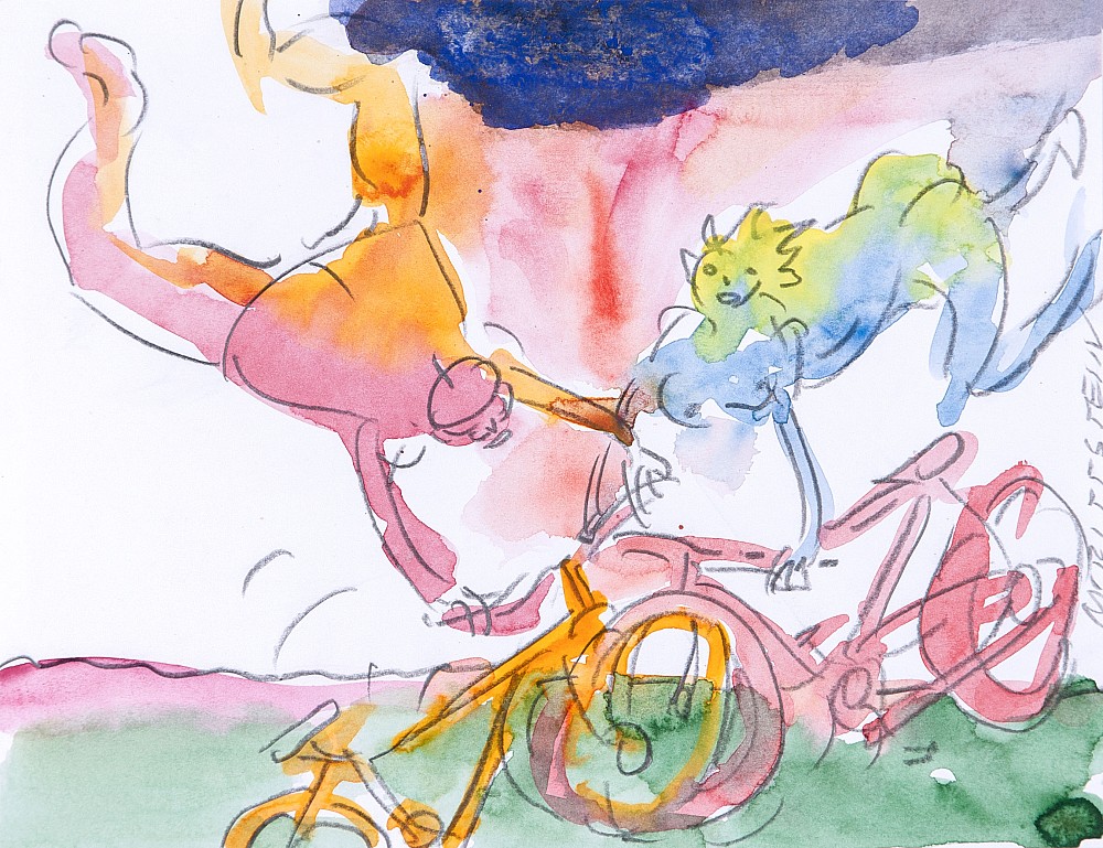 akvarel, tužka, papír, 1999, 15,5 x 22 cm, sign. PD M. Rittstein, studium na SOŠV v Praze, žák prof. A. Paderlíka na AVU tamtéž, spoluzakladatel Volného seskupení 12/15, Pozdě, ale přece, člen uměleckého sdružení Nová skupina a SVU Mánes