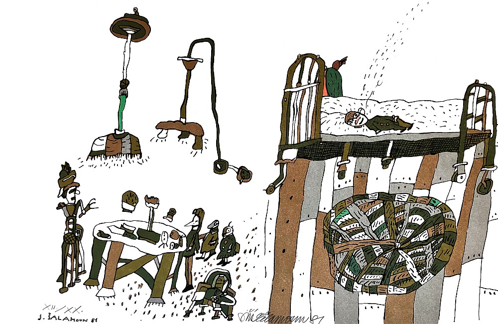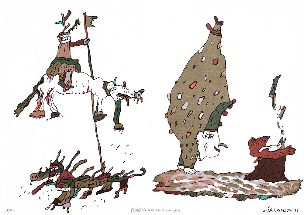 litografie, 1981, 29,5 x 41,5 cm, sign. DU a PD J. Šalamoun 81, č. 8/60, žák prof. V. Silovského a V. Pukla na AVU v Praze, prof. A. Kapra a G. K. Müllera na Vysoké škole grafiky a knižního umění v Lipsku, člen SČUG Hollar