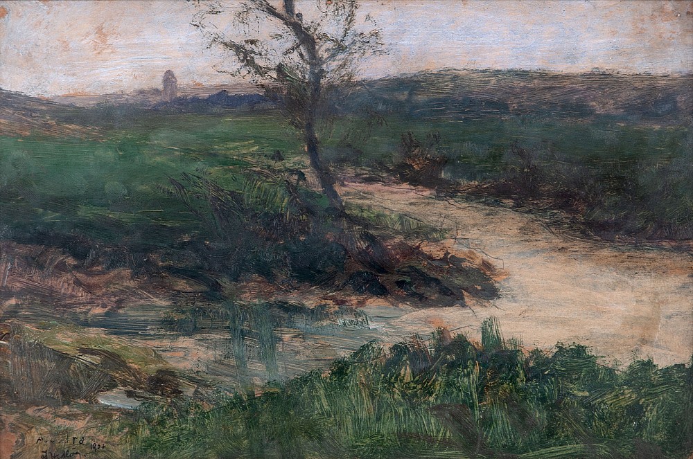 olej, lepenka, 1906, 21,5 x 32 cm, sign. LD A. Satra, rám, na zadní straně popsáno: poznámky o zakoupení obrazu v r. 1957, 2x razítko J. U. C. Bedřich Kominík, rám mírně poškozen, signatura mírně setřená, Antikvariát Dlážděná