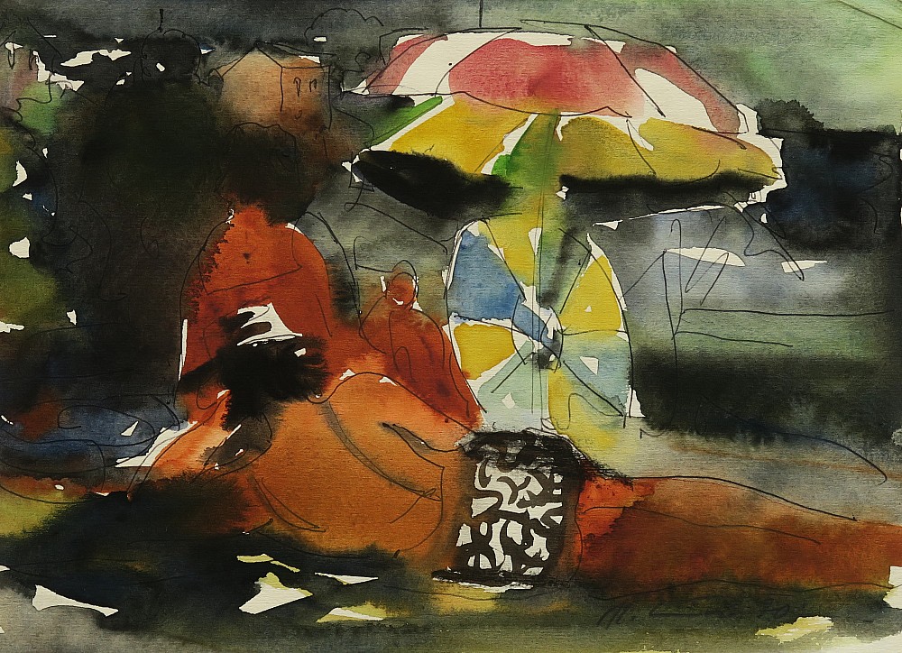 tempera, tuš, papír, 1970, 20,3 x 28 cm, sign. PD K. Souček 70, rám, Antikvariát Ostrovní, žák prof. A. Hofbauera, J. Bendy, J. Obrovského, člen Skupiny 42, Umělecké besedy, SČUG Hollar