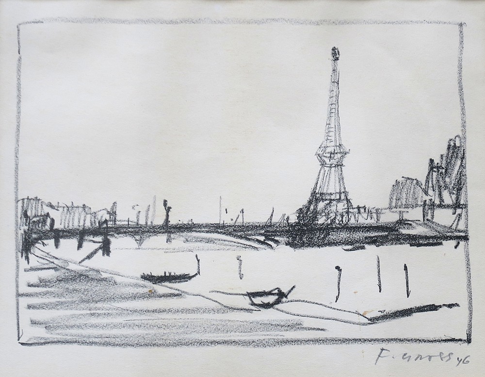 litografie, 1946, 15,3 x 10 cm, sign. PD F. Gross 46, rám, Antikvariát Ostrovní, žák prof. Kysely na UMPRUM v Praze, člen Skupiny 42, UB, SČUG Hollar a Radar