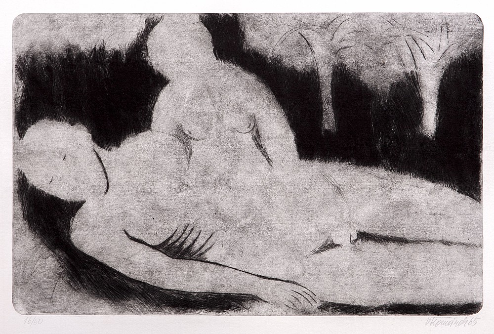 lept, 33,5 x 44,5 cm, sign. DU VKomárek, č. 6/50, žák prof. K. Mináře na AVU v Praze a K. Štipla na VŠUP v Praze, člen SČUG Hollar a SČVU