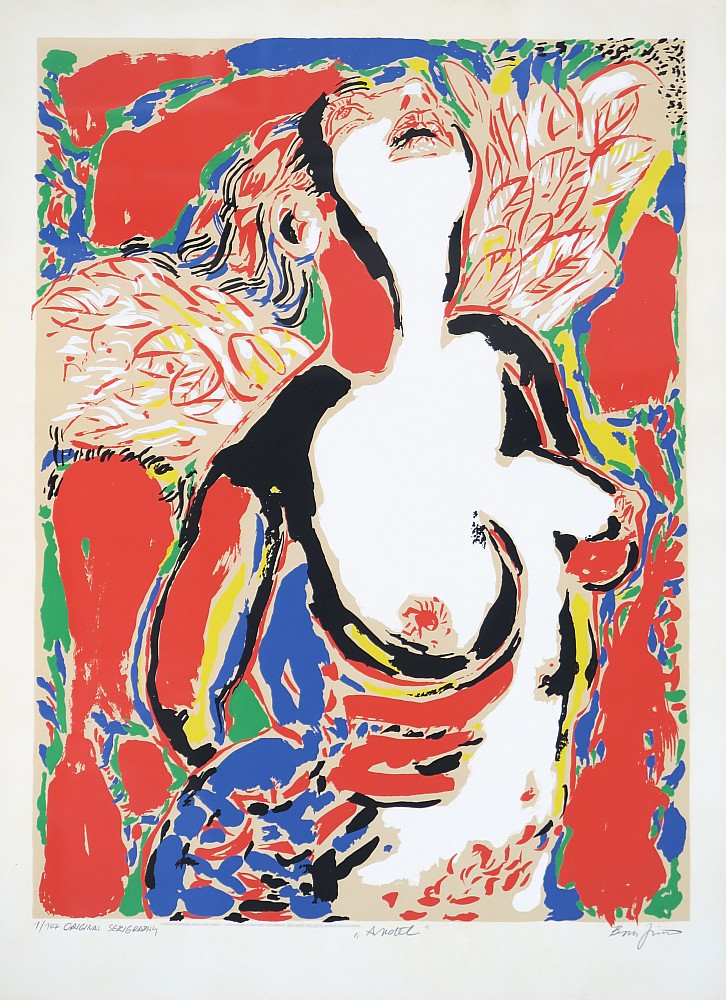serigrafie, 58,3 x 41,3 cm, sign. PD Boris Jirků, rám, č. 1/107, Antikvariát Ostrovní, žák prof. A. Paderlíka na AVU v Praze, člen SVU Mánes