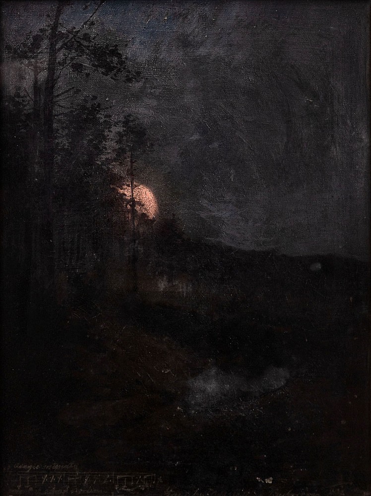 olej, plátno, 1892, 37,5 x 28 cm, rám, V dolní části plátna motiv z hudební notace a popis Andante sostenuto, dále pravděpodobně Hauptmotiv Sonate Beethoven 892. Malba pojednává pravděpodobně téma ze Sonáty cis moll Měsíční svit, op. 27 č. 2 z roku 1802. Na zadní straně štítek s popisem, Antikvariát…