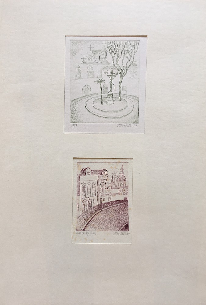 2 x ocelorytina, 1981, 11,5 x 10; 9,5 x 10 cm, sign. PD Hanžlík 81, č. 8/50, a. t., na grafice viditelné fleky
