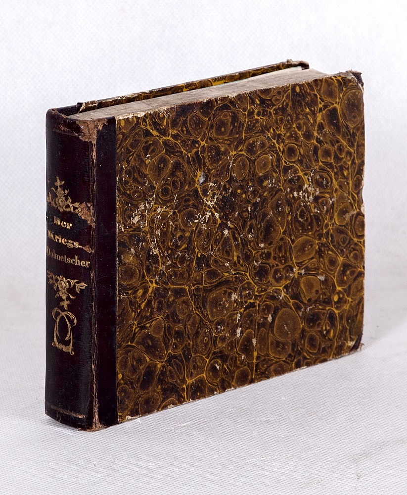 starý tisk, 10,5 x 13,5 cm, raritní vojenský několikajazyčný slovník, autoři W. Foerster a L. Schneider, vyd. A. W. Hann, Berlin, 1829, vlepeno bar. exlibris Militär-Akademie zu Wiener Neustadt, dobová signatura majitele Carl von Tegetthof, polokožená vazba se zlatým ražením na hřbetu, 327s., dobrý …