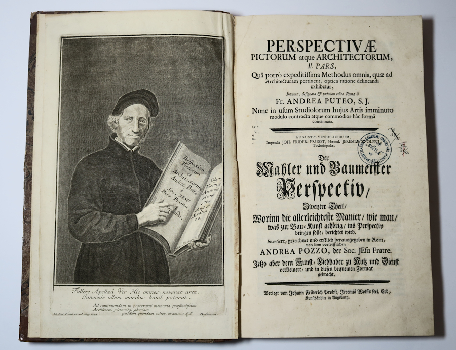 2x kniha, grafický atlas určený pro malíře, sochaře a architekty 18. století, italský malíř a teoretik perspektivy Andrea Pozzo vydal svůj opus magnum v Římě r. 1693, brzy se tento nepostradatelný obrazový manuál dočkal překladu do dalších jazyků a řady vydání, každý z dílů obsahuje 100 mědirytinový…
