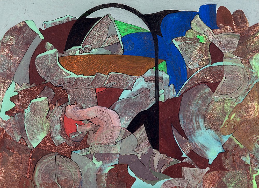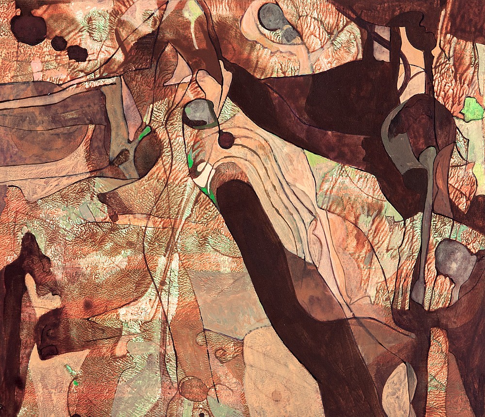 tuš, olej, papír, 1980, 25,5 x 35 cm, sign. vzadu Jiří Mrázek 1980
