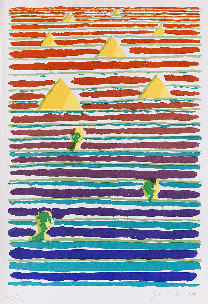 litografie, 1993, 52,5 x 36,5 cm, sign. PD Jiří Sopko 1993, č. 16/50, Antikvariát Dlážděná, žák prof. A. Pelce, člen Volného sdružení 12/15, Umělecké besedy
