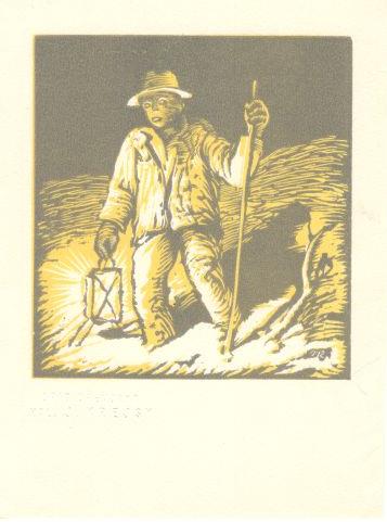 dřevoryt, 22 x 11,2 cm, DU perem vepsáno: Upřímnou soustrast. Iva Šedivá, papír mírně pokrčen, uprostřed papíru naznačené horizontální přeložení, Aantiqari.at Radhošťská,