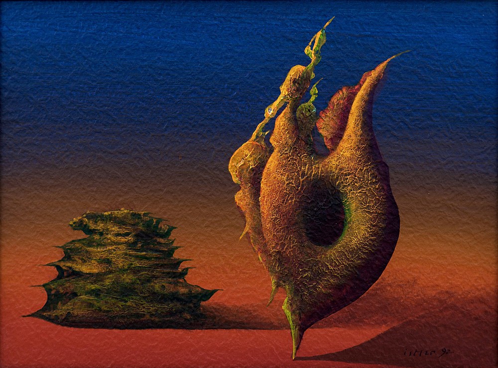 olej, karton, 1992, 29,5 x 39,5 cm, sign. PD Istler 92, rám, vzadu razítko Galerie Vltavín, Josef Istler patří k jedné z vůdčích osobností českého informelu. Jeho dílo bylo výrazně ovlivněno surrealismem a vyvinulo se až k abstrakci. Informální umění, zkráceně informel, se v Evropě výrazně prosazova…