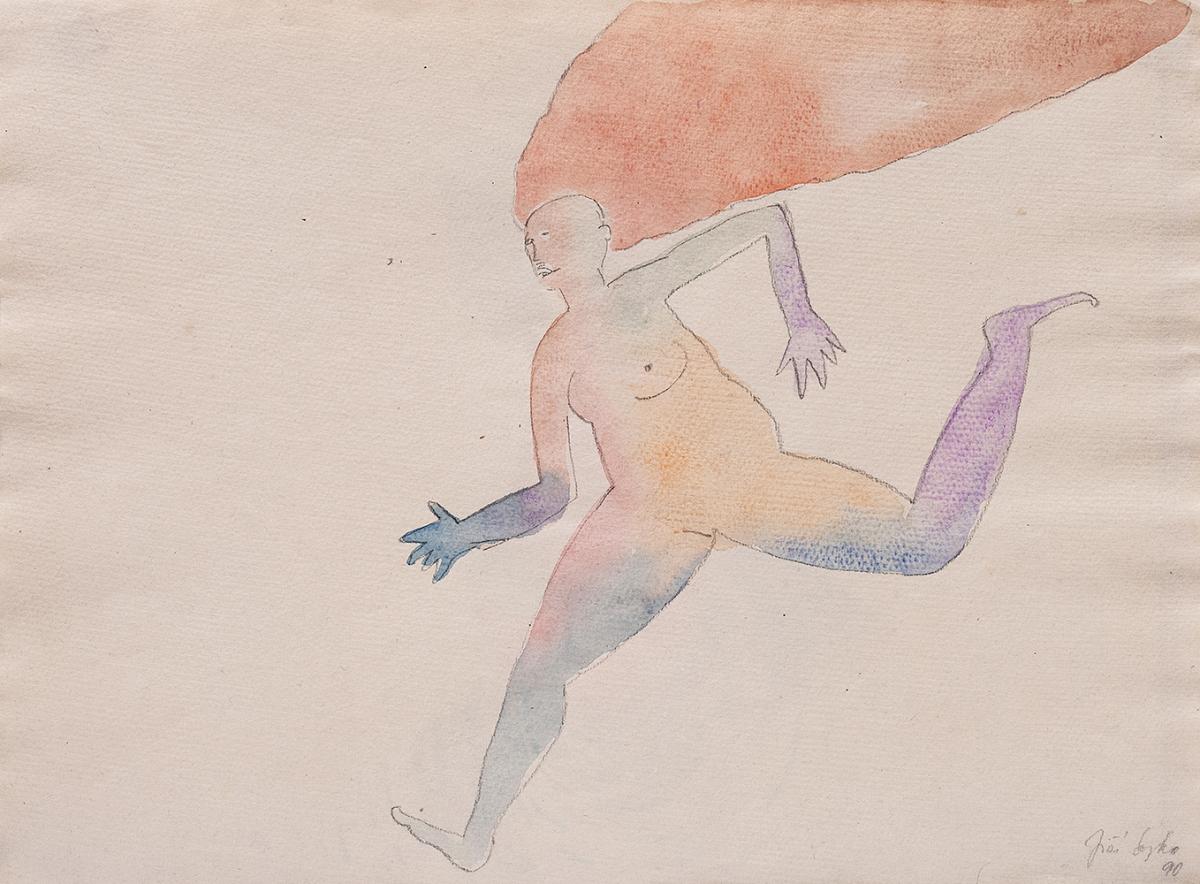 akvarel, tužka, ruční papír, 1990, 29,8 x 41,5 cm, sign. PD Jiří Sopko 90, Provenance: Antiquarian Dlážděná, the disciple of prof. A. Pelc, member of Volne sdruzeni 12/15, The Umelecka beseda