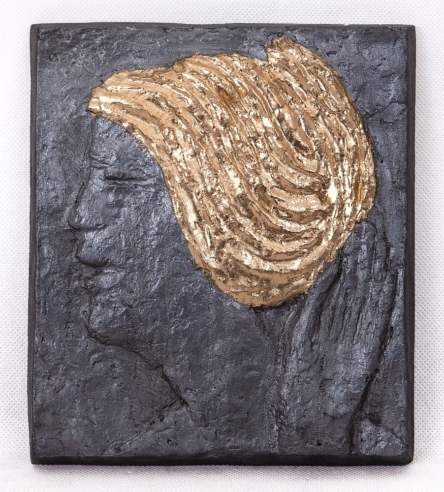 reliéf, cín, olovo, zlato, 2009, 18,5 x 16 cm, sign. zezadu PD O. Zoubek, certifikát pravosti doložen, posouzeno nadací Zoubek - Kmentová , Aantiqari.at Radhošťská, , the disciple of prof. Wagner, member of the group Trasa, UVU, The Umelecka beseda