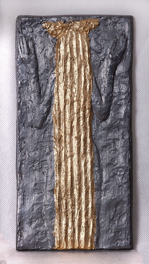 reliéf, cín, olovo, zlato, 2009, 23 x 12 cm, sign. zezadu PD O. Zoubek, certifikát pravosti doložen, posouzeno nadací Zoubek - Kmentová , Aantiqari.at Radhošťská, , the disciple of prof. Wagner, member of the group Trasa, UVU, The Umelecka beseda