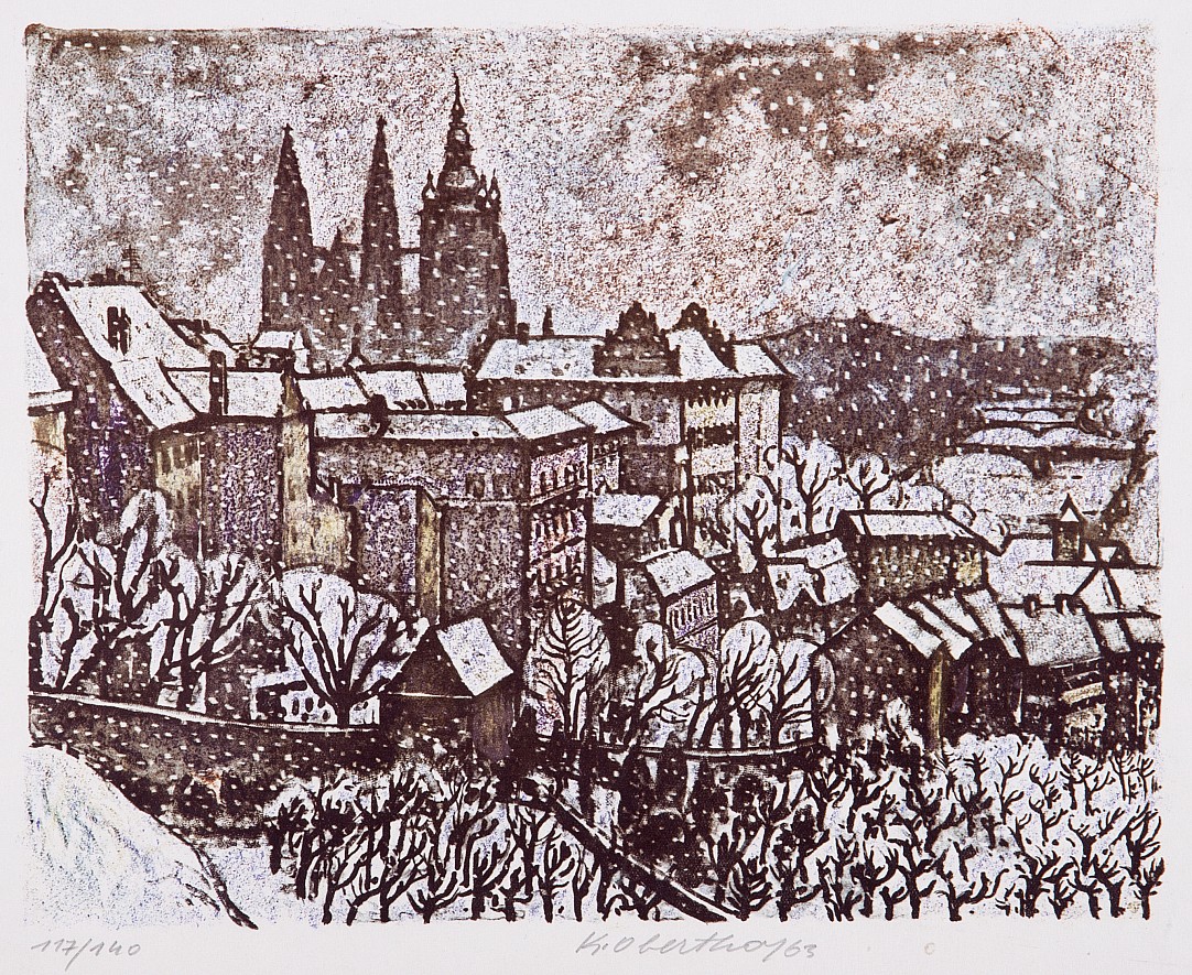 litografie, 1958, 33,5 x 45 cm, sign. PD K. Oberthor 58, rám, č. 53/200, Antikvariát Ostrovní, žák prof. I. Kulce na Ukrajinské akademii a prof. V. Pukla a V. Silovského na AVU v Praze, člen SČUG Hollar