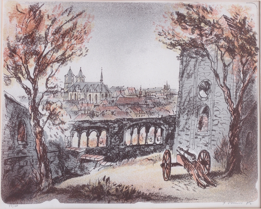 litografie, 1943, 23,5 x 34 cm, sign. PD Jar Nov 43, č. 9/56, Antikvariát Dlážděná