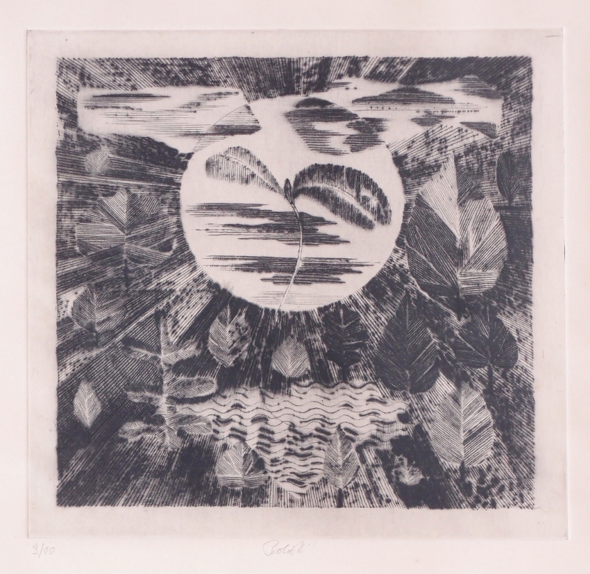 lept, 24,7 x 25 cm, sign. DU Rolčík, pasparta, č. 3/10, Antikvariát Ostrovní, studium na Škole umění ve Zlíně, žák prof. J. Baucha a A. Pelce na VŠUP v Praze