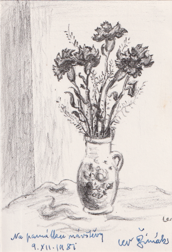 litografie, 1981, 13,5 x 10 cm, sign. PD Lev Šimák, rám, Antikvariát Ostrovní, žák prof. M. Pirnera, J. Obrovského, A. Bröhmse a F. Thieleho na AVU v Praze, čelní člen Umělecké besedy, místopředseda a předseda SČUG Hollar