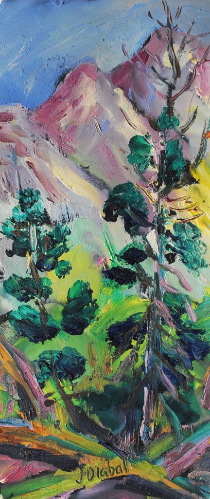 olej, papír, 10,5 x 23,3 cm, sign. PD J. Dlabal, Antiqari.at Radhošťská, antiqari.at Radhošťská, maloval s A. Doležalem a L. Musilem, největší úspěch zaznamenal v Japonsku