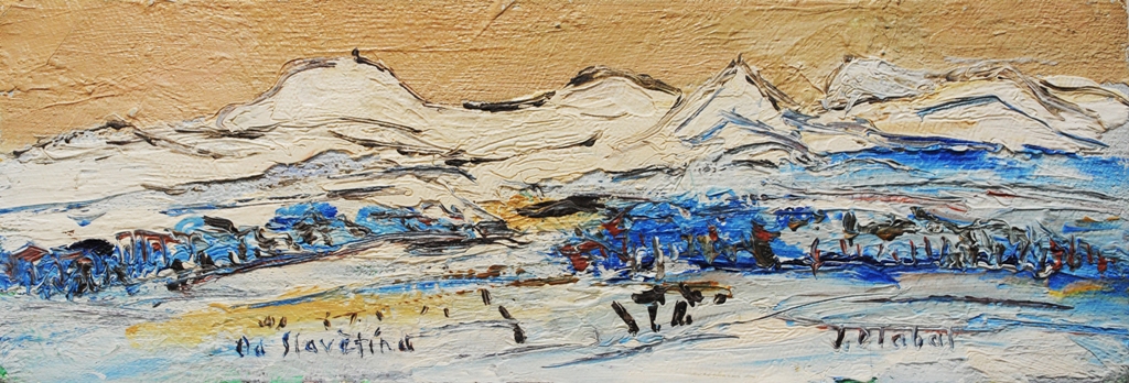 olej, karton, 10,5 x 19,8 cm, sign. PD J. Dlabal, Antiqari.at Radhošťská, antiqari.at Radhošťská, maloval s A. Doležalem a L. Musilem, největší úspěch zaznamenal v Japonsku