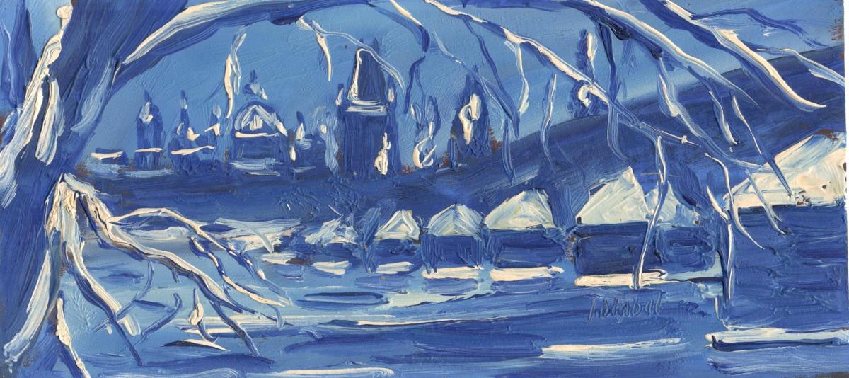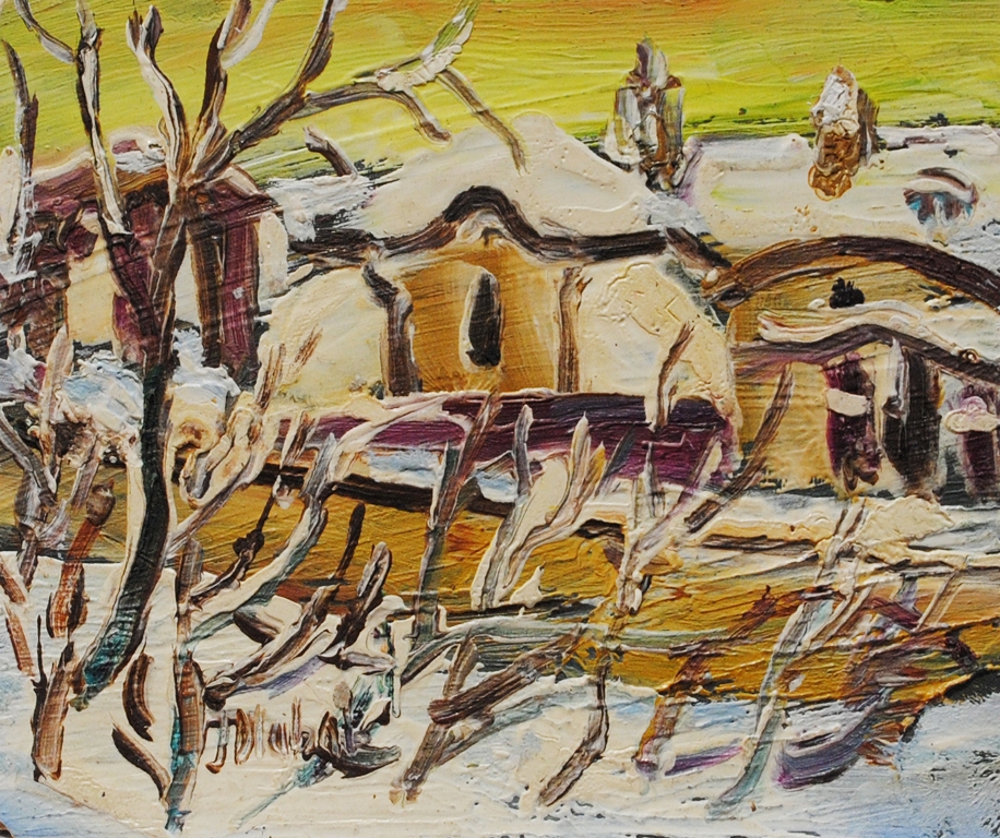 olej, papír, 9 x 11,2 cm, sign. LD J. Dlabal, Antiqari.at Radhošťská, antiqari.at Radhošťská, maloval s A. Doležalem a L. Musilem, největší úspěch zaznamenal v Japonsku