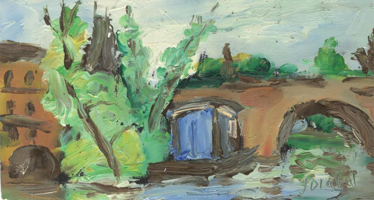 olej, papír, 10,4 x 13,8 cm, sign. LD J. Dlabal, levý dolní růžek papíru ustřižen, Antiqari.at Radhošťská, antiqari.at Radhošťská, maloval s A. Doležalem a L. Musilem, největší úspěch zaznamenal v Japonsku