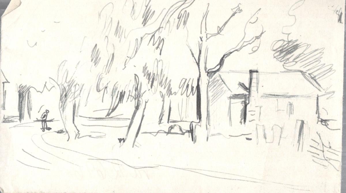 tužka, papír, 22,5 x 32 cm, lehce ztažloutlý, zašlý papír, Aantiqari.at Radhošťská,