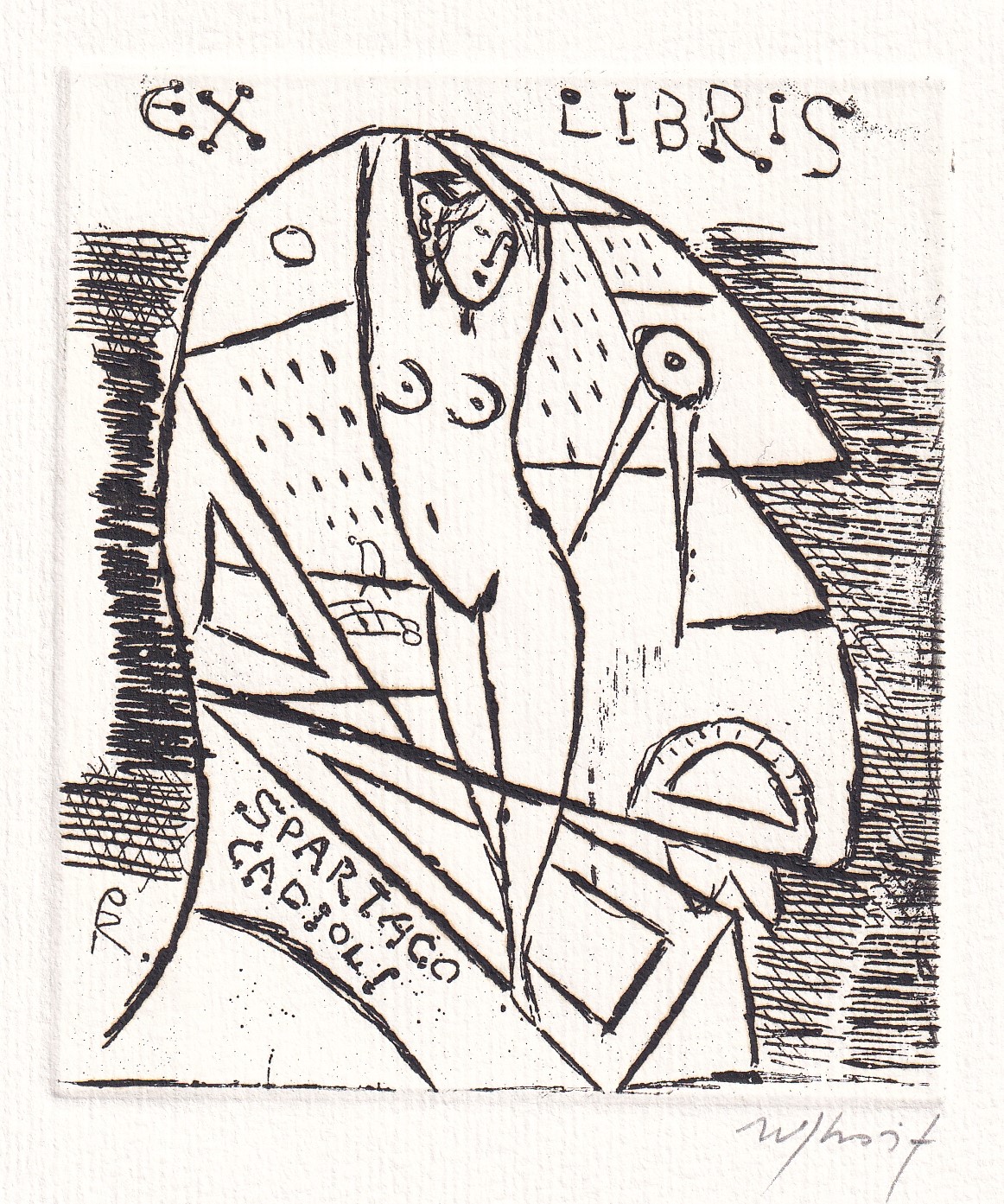 suchá jehla, 10 x 8,5 cm, sign. PD nečitelně, Antikvariát Dlážděná