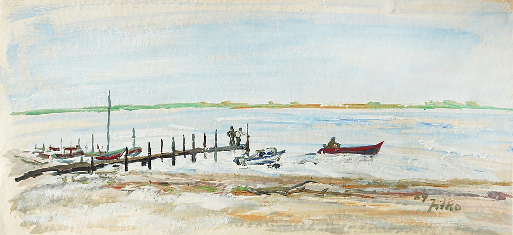 tuš, akvarel, papír, 1993, 28,5 x 41 cm, monogr. ZK 93, rám, Antikvariát Ostrovní