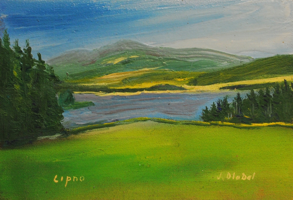 olej, plátno, 10 x 14,8 cm, sign. PD J. Dlabal, LD Lipno, Antiqari.at Radhošťská, antiqari.at Radhošťská, maloval s A. Doležalem a L. Musilem, největší úspěch zaznamenal v Japonsku