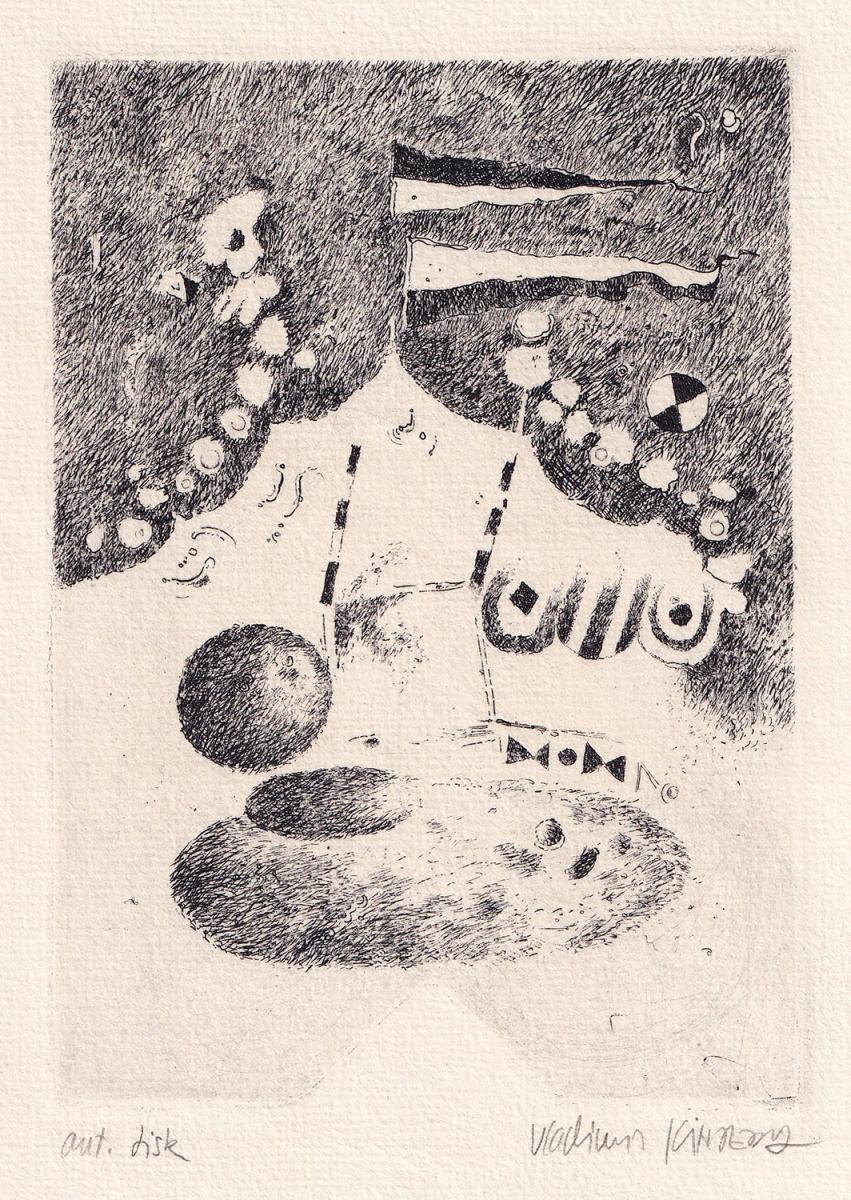 suchá jehla, 1981, 11 x 7,6 cm, sign. PD Jiří Mika, č. 2/20, ze souboru Cirkus 82, vyšlo nákladem autorů jako neprodejný tisk v počtu 60 výtisků, Praha 1982, Provenance: Antiquarian Dlážděná, the disciple of prof. Hnizdo, member of Nova skupina