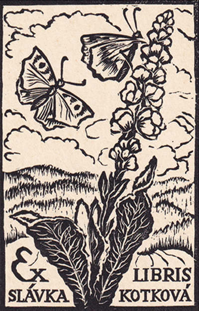 dřevoryt, 1953, 9 x 6 cm, Ex libris Slávka Kotková, Provenance: Antiquarian Dlážděná
