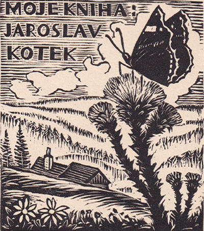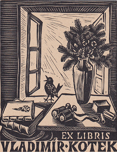 dřevoryt, 1944, 8,7 x 6,6 cm, Ex libris Vladimír Kotek, Provenance: Antiquarian Dlážděná