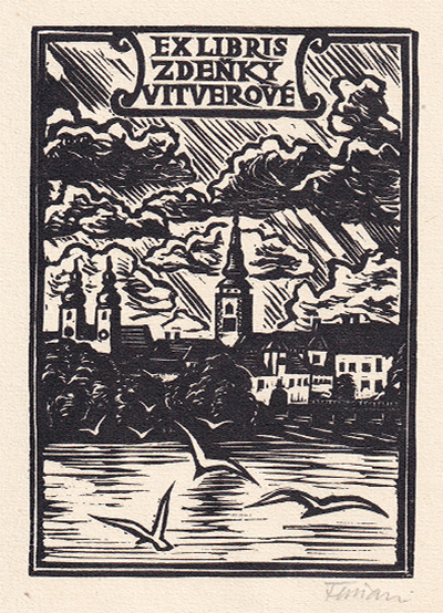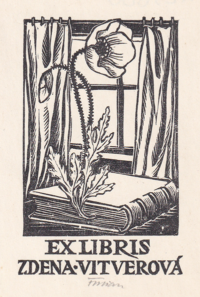 dřevoryt, 8 x 5,5 cm, sign. UD Florian, Ex libris Zdena Vitverová, Provenance: Antiquarian Dlážděná
