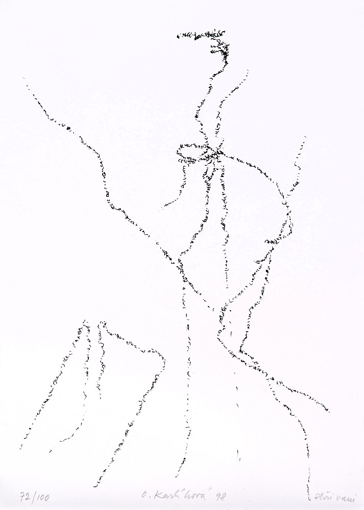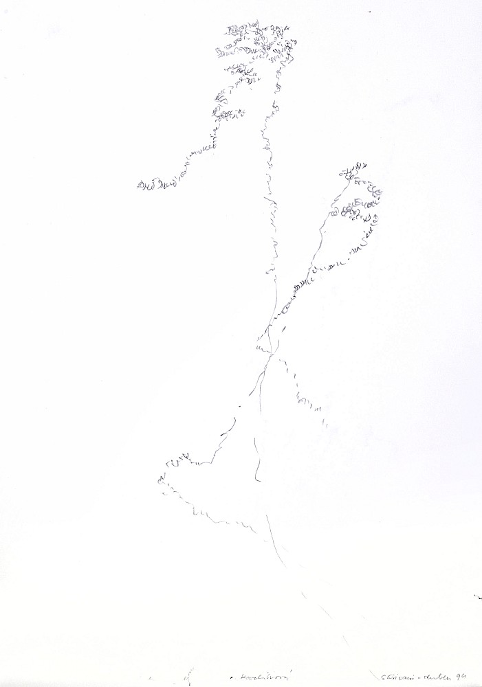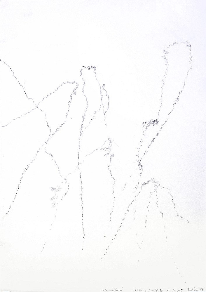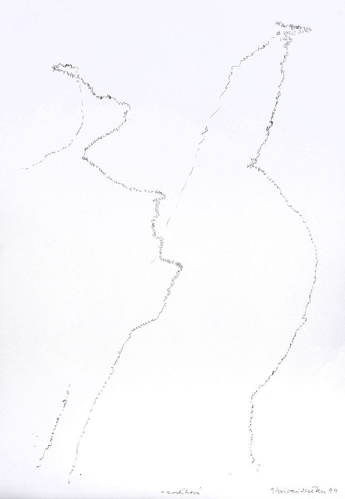 tužka, papír, 1994, 49 x 34 cm, sign. DU O. Karlíková, záznam skřivani - duben 94, studied at Oficina Pragensis, the disciple of prof. Strnadel and A. Kybal at The Academy of Arts, Architecture and Design in Prague, member of The Umelecka beseda in Prague