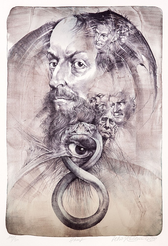 litografie, 1993, 48,5 x 33 cm, sign. PD Oldřich Kulhánek 1993, č. 114/200, the disciple of prof. K. Svolinsky at The Academy of Arts, Architecture and Design in Prague, member of The Hollar Association of Czech Graphic Artists