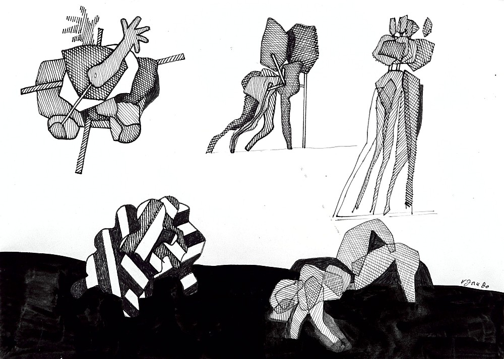 tuš, papír, 1980, 21 x 29,5 cm, sign. PD V. Jan 80, the disciple of prof. J. Wagner