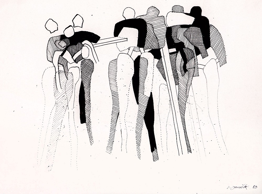 tuš, papír, 1983, 30 x 42 cm, sign. PD V. Janoušek 83, the disciple of prof. J. Wagner