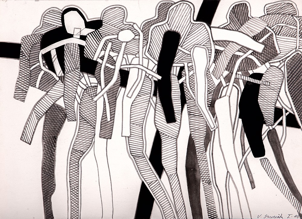 tuš, papír, 1981, 21 x 29,5 cm, monogr. PD VJ 16. 11. 1981, the disciple of prof. J. Wagner