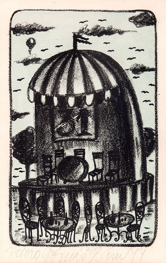 litografie, 1977, 19 x 13,5 cm, sign. PD Tomáš Bím 77, pasparta, č. 56/80, Aantiqari.at Radhošťská, , the private study