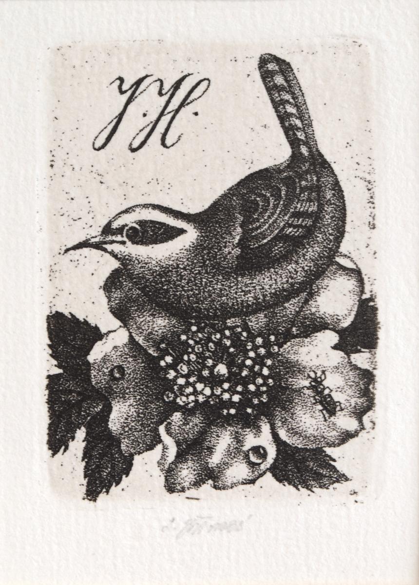lept, 6,7 x 4,8 cm, sign. DU L. Jiřincová, Antiqari.at Radhošťská, antiqari.at Radhošťská, žákyně prof. T. F. Šimona na AVU v Praze, členka SČUG Hollar, Spolku přátel exlibris a drobné grafiky a Spolku českých bibliofilů