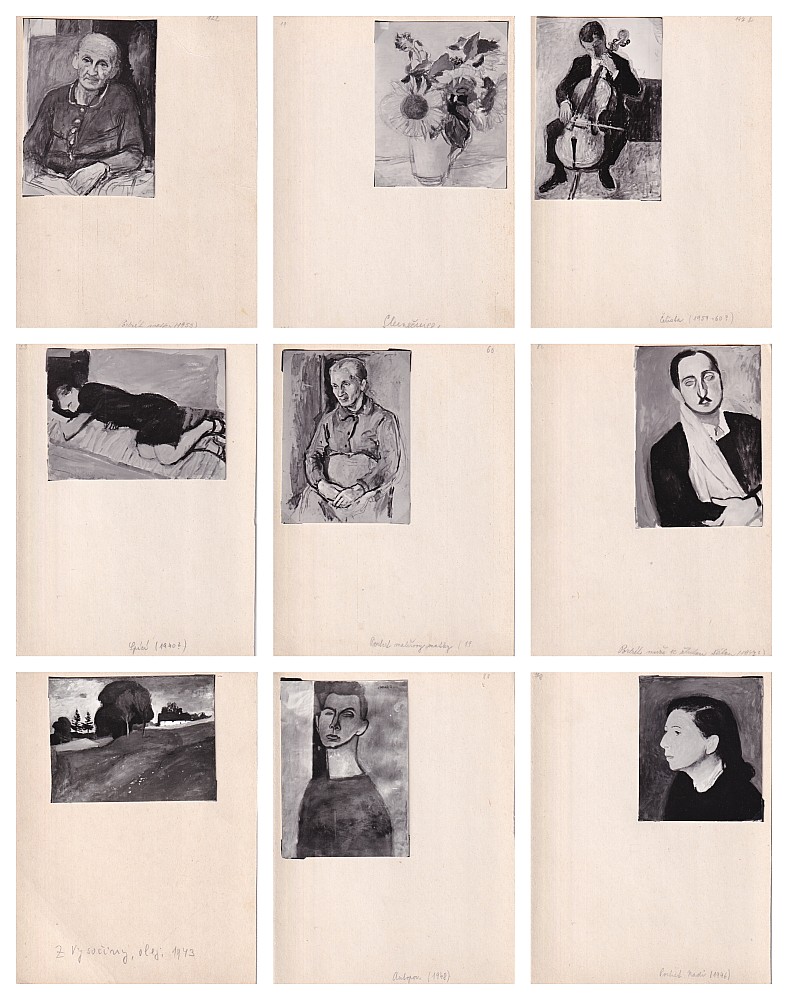 soupis obrazů, část osobní kartotéky J. Horníka obsahující 19 kartiček s vlepenou fotografií a popisem obrazu, Antikvariát Dlážděná, žák prof. W. Nowaka, J. Loukoty a prof. Obrovského na AVU v Praze, soukromý žák R. Vejrycha, studium na École des Beaux-Arts v Paříži, člen Umělecké besedy a SČVU