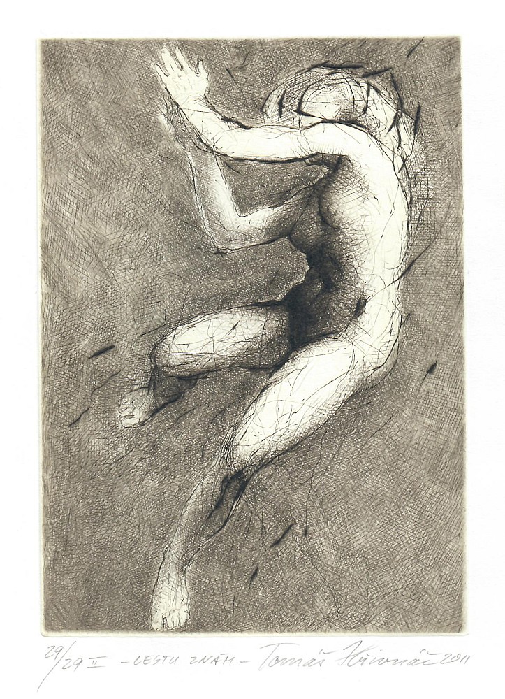 suchá jehla, 1996, 19 x 49 cm, sign. PD Tomáš 96, č. 6/30, studium na SUPŠ v Praze