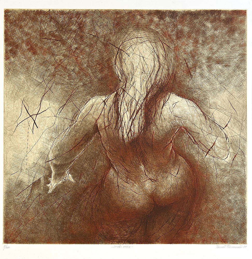 suchá jehla, 1997, 16,5 x 11 cm, sign. PD Tomáš 97, č. 12/23, studium na SUPŠ v Praze