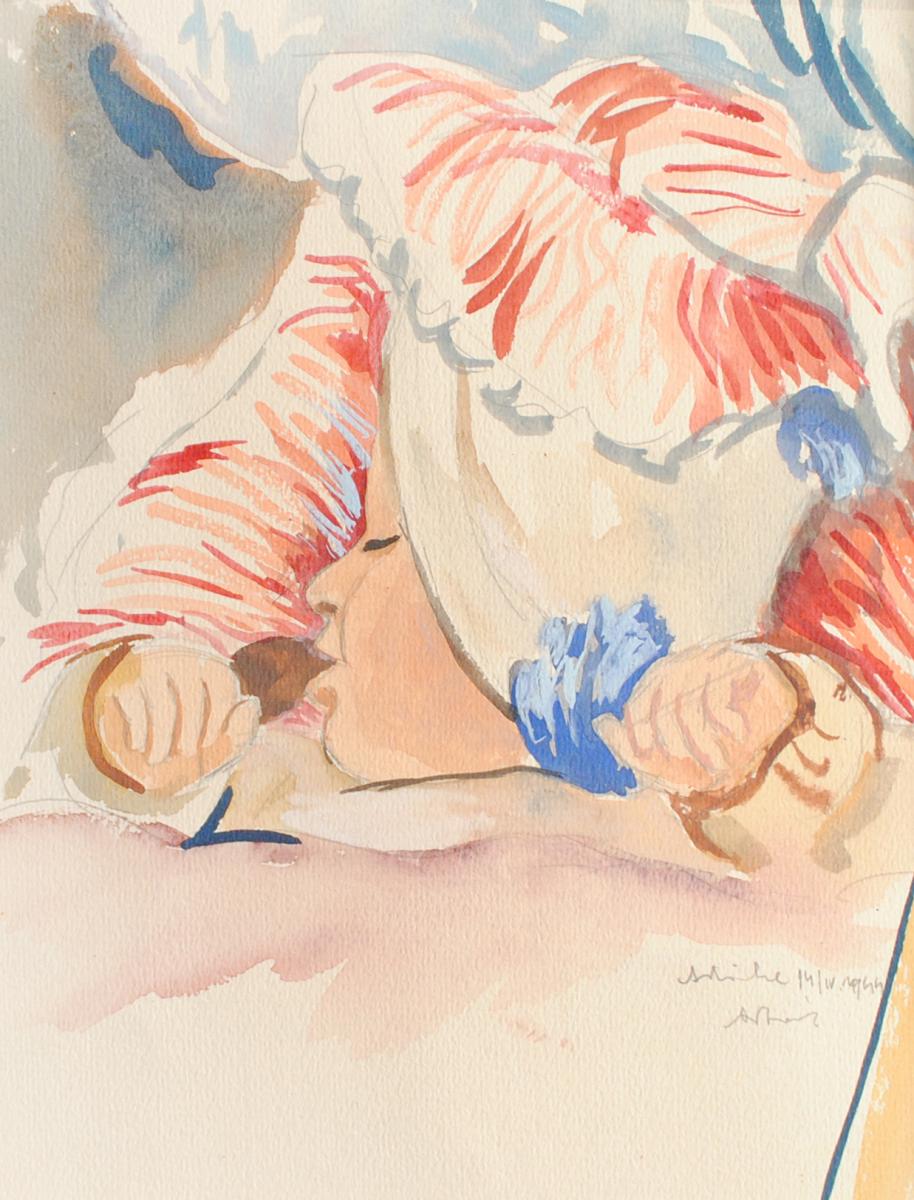 tužka, akvarel, papír, 1939, 6,7 x 5,7 cm, sign. PD , pasparta, DU 25/10 39, lehce zažloutlý papír, Antiqari.at Radhošťská, antiqari.at Radhošťská