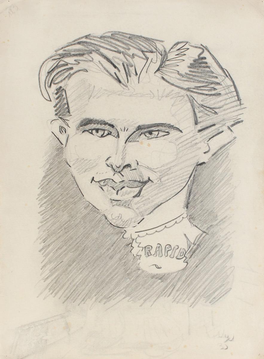 tužka, papír, 23 x 28,8 cm, vzadu popsáno, lehce zašpiněný papír, Antikvariát Ostrovní, žák prof. E. Dítěte a F. Kysely na VŠUP v Praze, poté M. Švabinského na AVU v Praze, člen Umělecké besedy a SČUG Hollar