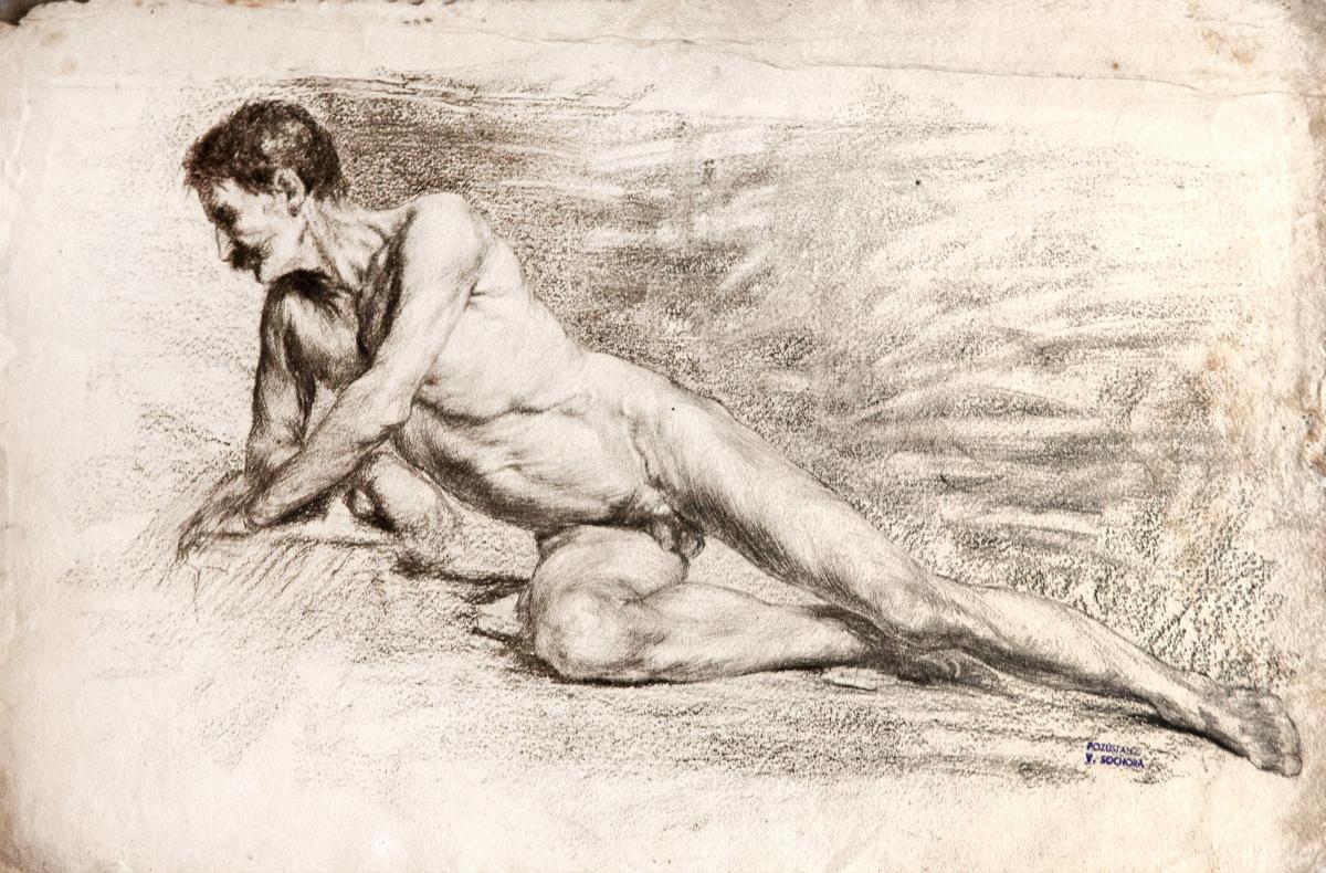 tužka, papír, 33,5 x 51,5 cm, razítko: pozůstatek V. Sochora, zašpiněné, Antiqari.at Radhošťská, antiqari.at Radhošťská