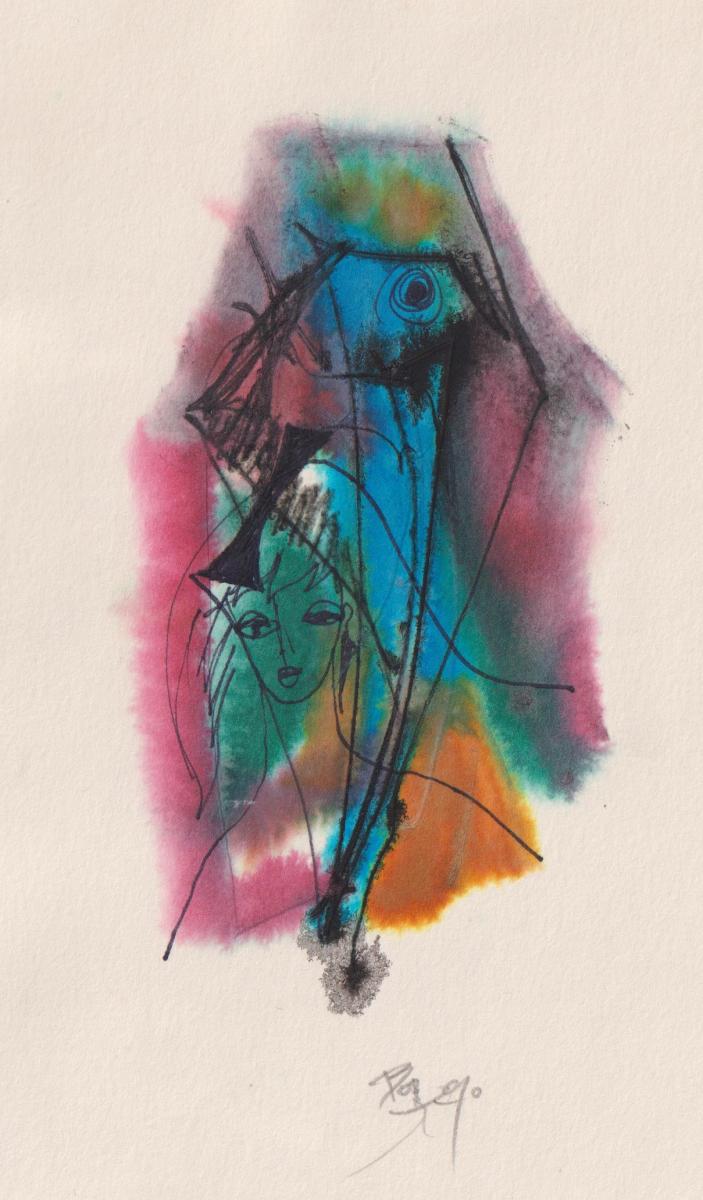 kombinovaná technika, 9,8 x 14,7 cm, sign. PD, papír lehce přeložený, Antiqari.at Radhošťská, antiqari.at Radhošťská